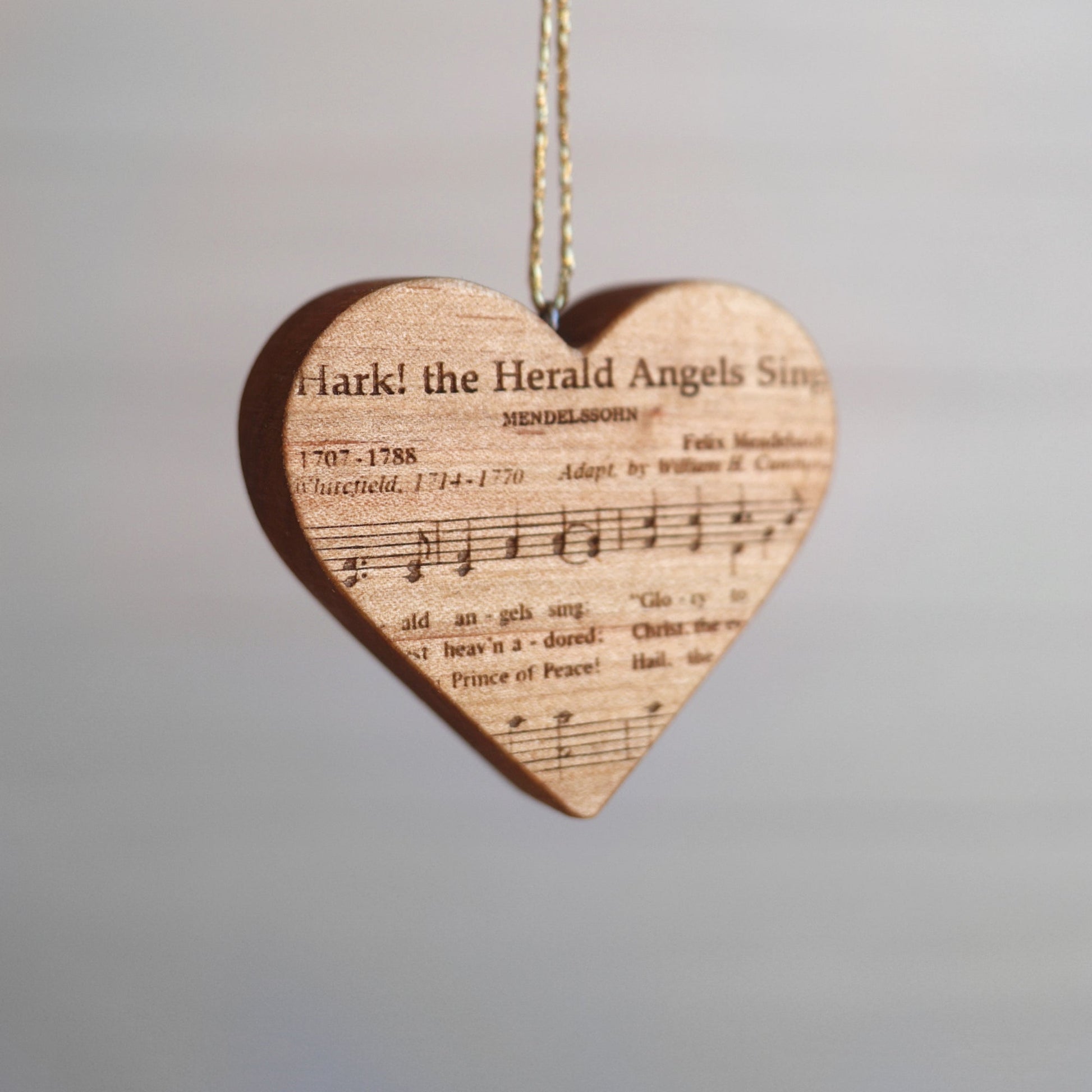 These beautifully engraved hearts, adapted from our popular Christmas Stars, feature three timeless songs: Joy to the World, Hark! The Herald Angels Sing, or O Holy Night.