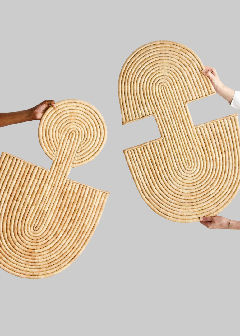 Handwoven in Malawi from sustainably sourced palm leaves, these unique art pieces are created from traditional coil weaving techniques and left natural for a soft, organic look that focuses on the unique shape and weave patterns. The female-owned artisan group that creates them blends traditional and modern looks, working with other female companies and designers globally to collaborate on products and patterns.