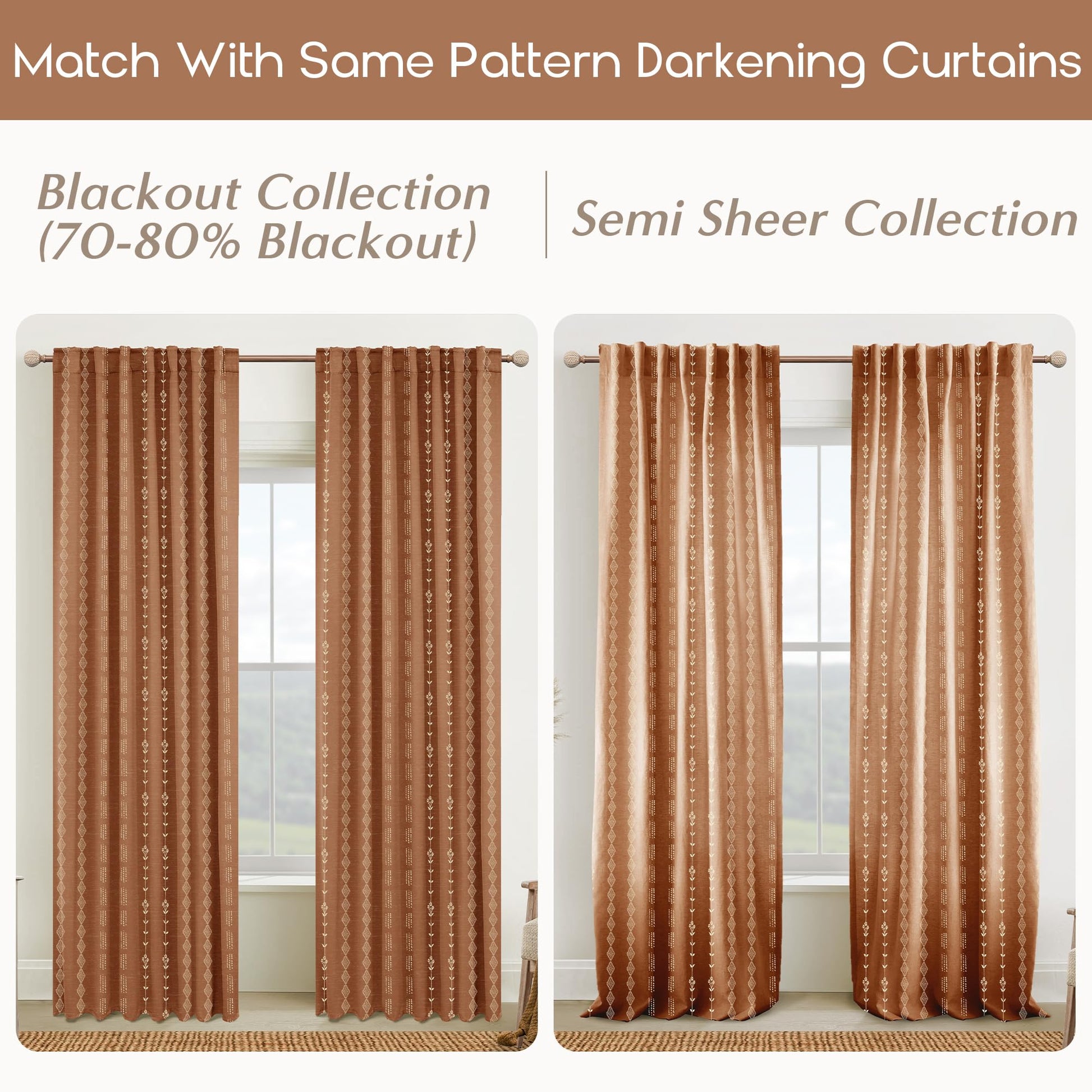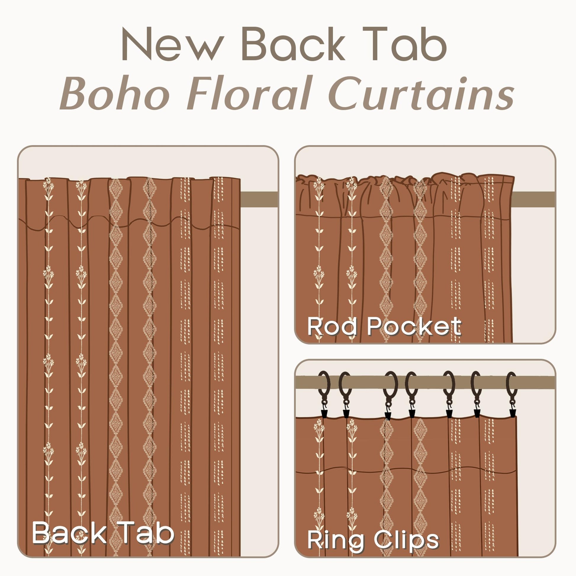 • Upgraded Boho Curtains: We hear our customers voice and adjust the grommet top to back tab curtains which feels more seamless creating soft pleated curtains look. ALSO we adjust the pattern a little bit featuring classic traditional boho DIAMODN design with floral botanical vines for a more boho-chic vibe.