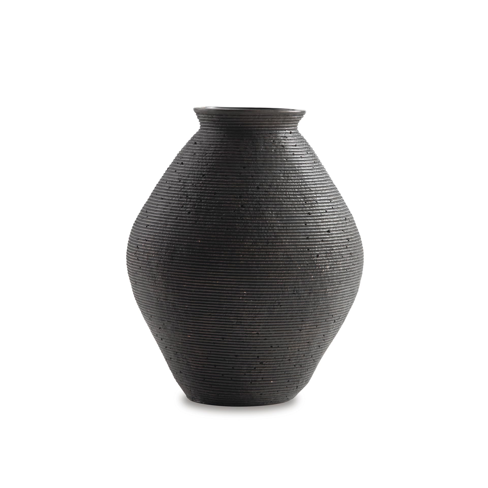 - TEXTURED VASE: Ribbed textural rings give this vase a wonderful artisanal quality. The antiqued brown finish is elegant yet versatile, pairing well with existing living room decor